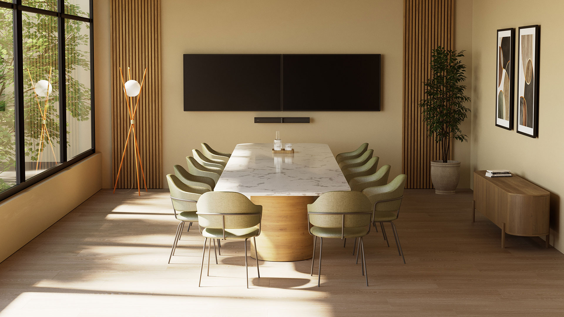8 波束成形降噪麦克风阵列,加上 4 个性能强劲的扬声器,在整个会议室中打造水晶般清晰的音效。